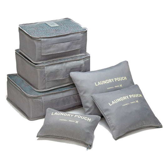 6 Pack Foldable Travel Organizer Set for Packing Essentials Grey