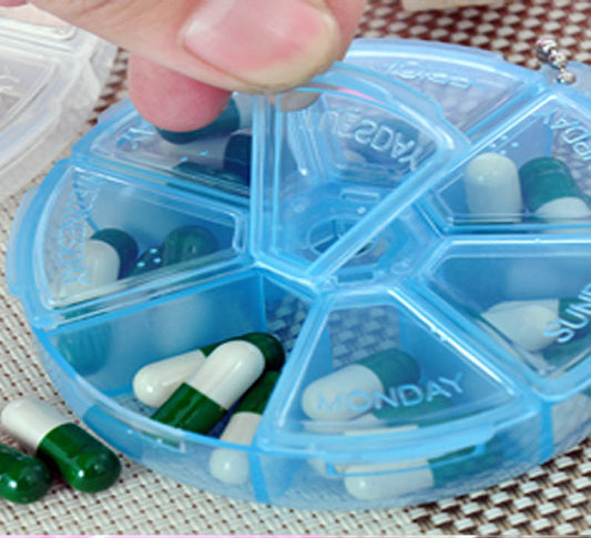 7 Day Pill Organizer Weekly Medication Storage Box Blue