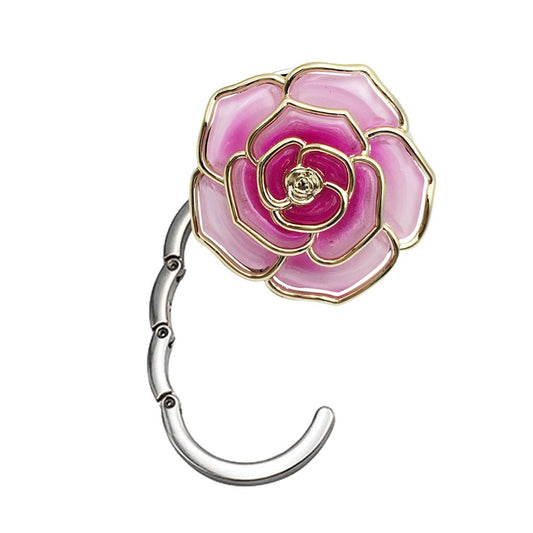 Elegant Rose Flower Purse Hook Table Holder Pink