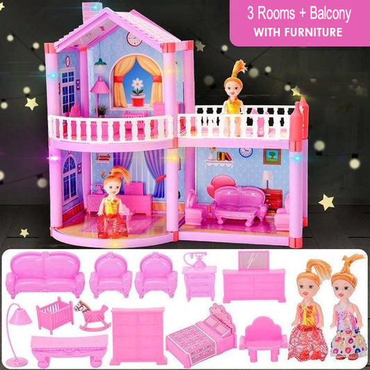 Large 3-Level Dreamhouse Mansion Dollhouse with Dolls and Furniture for Princesses