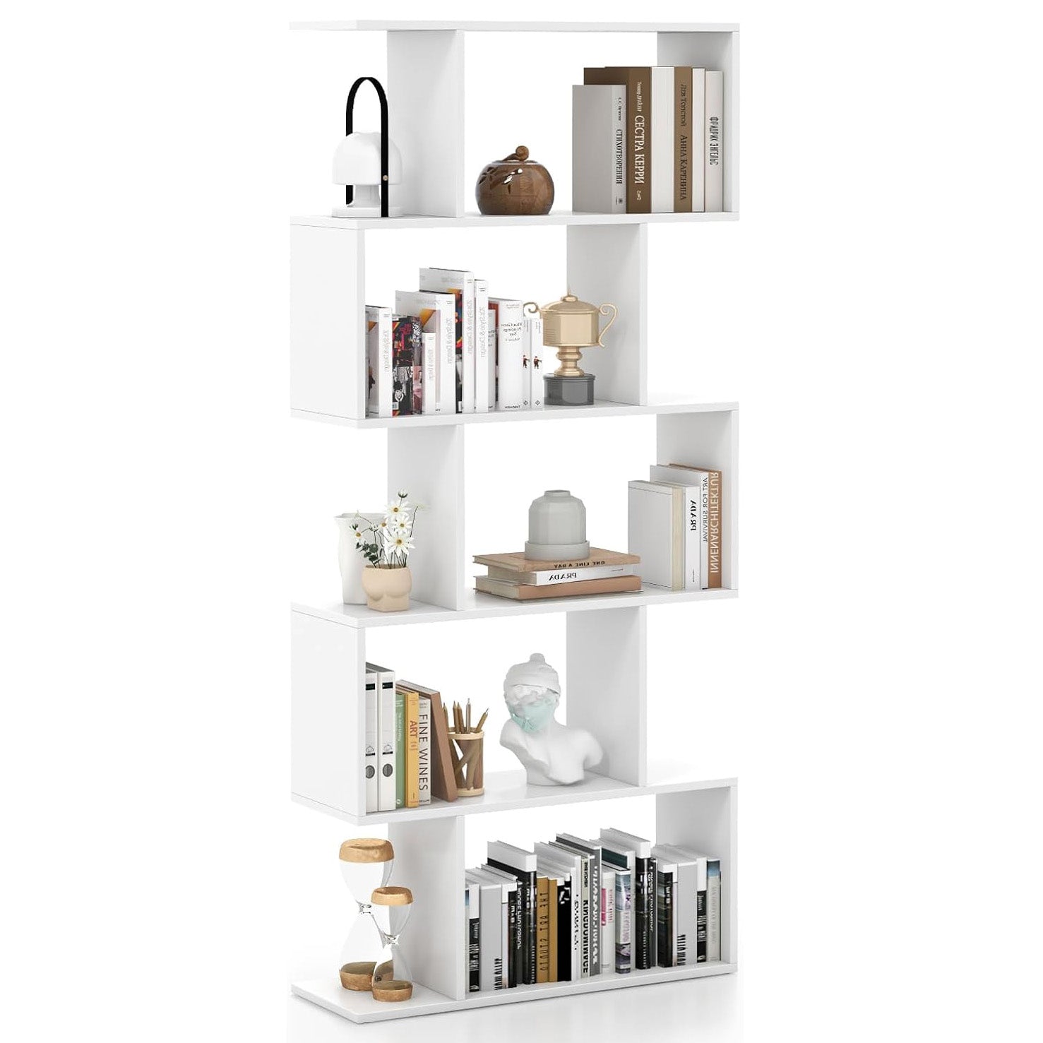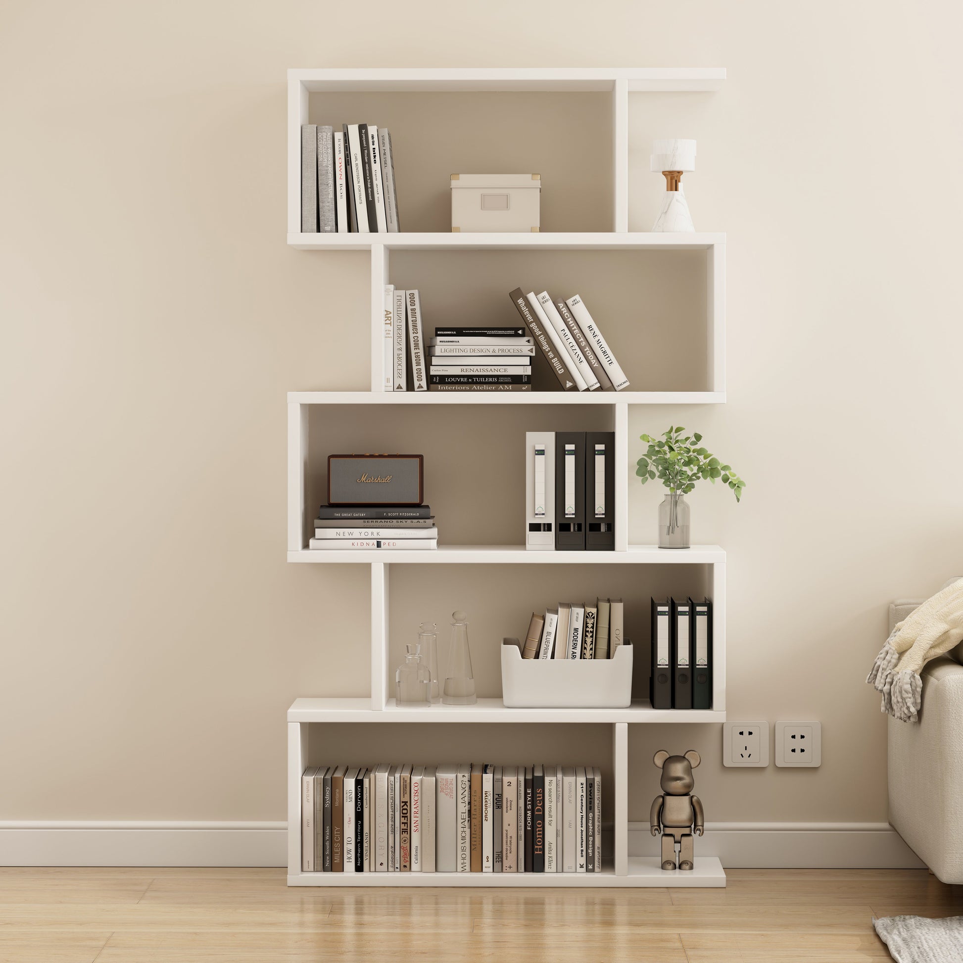 Redefine your living space with this stunning White Modern 5-Tier Bookshelf Display Unit—a perfect fusion of contemporary style and everyday functionality. Designed with a clean, crisp white finish and eye-catching geometric shelves, this shelving unit brings a fresh, airy feel to any room, instantly elevating your décor.