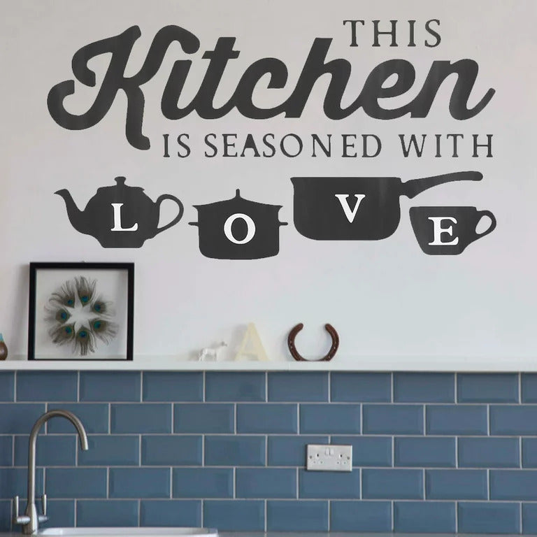 Transform your kitchen into a haven of love and warmth with our enchanting "This Kitchen is Seasoned with Love" wall sticker. Crafted with care from high-quality PVC, this eco-friendly and non-toxic decal is perfect for families looking to add a personal touch to their cooking spaces. Experience the joy of DIY by easily applying this versatile sticker to walls, tiles, mirrors, or furniture, and just as easily remove it whenever you wish. Here are some compelling reasons to make this charming addition to your kitchen: