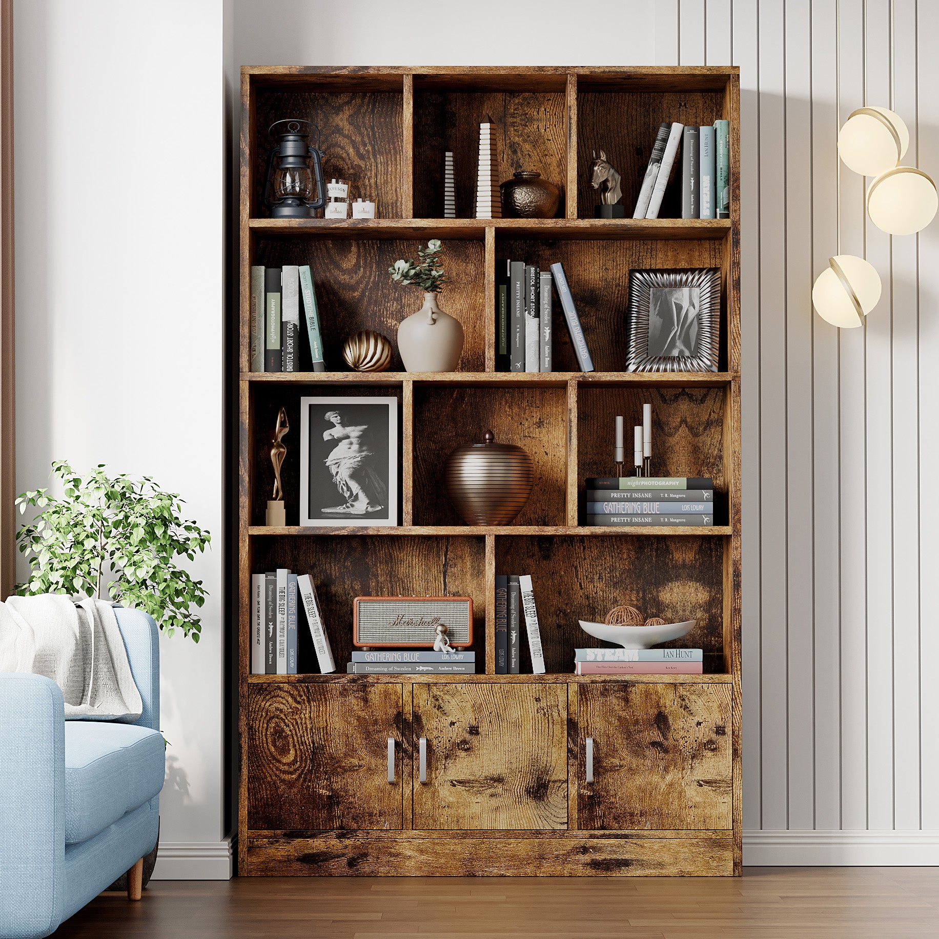 Enhance your home with the ultimate blend of style and functionality with our Combination Wardrobe Cupboard Bookshelf. This essential furniture piece not only offers a practical solution for storage but also adds a touch of rustic elegance to any room. Its versatile design incorporates a wardrobe, cupboard, and bookshelf all in one, making it an ideal addition to both small and large spaces.